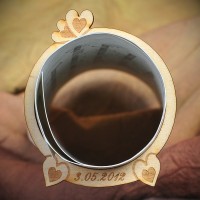 Cena zaproszenia obejmuje wykonanie ozdobnego elementu z drewna o grubości 3mm z wygrawerowanymi inicjałami i datą ślubu oraz wydruk treści na papierze A4 kreda 200g zadrukowanym dwustronnie wybranym wzorem tła.