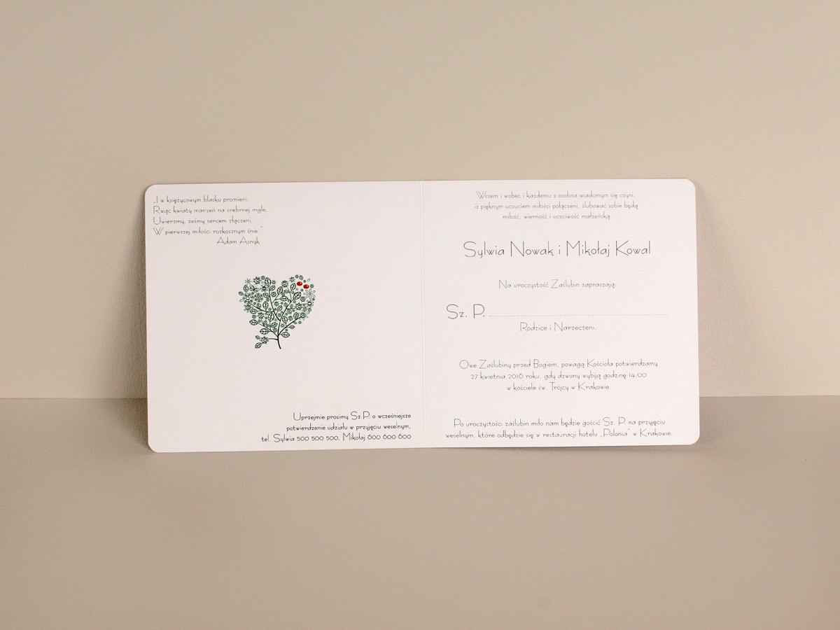 Zaproszenie Serca 07 - Kolekcja NATURAL ART - Extrema - zaproszenia ślubne, fotoksiążki, nadruki na koszulkach.