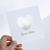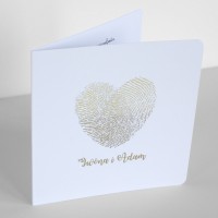 Cena zaproszenia zawiera wykonanie druku na papierze kreda mat o gramaturze 350g. Po złożeniu ma kształt kwadratu z zaokrąglonymi rogami o wymiarach 13,5 x 13,5cm. Zaproszenie zadrukowane jest z obu stron: z zewnątrz druk wykonany jest złotą, pięknie mieniącą się folią, wewnątrz standardowo druk jest czarno biały. Zaproszenie na okładce posiada złocone imiona młodych i datę ślubu, co podkreśla niepowtarzalny wygląd.