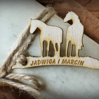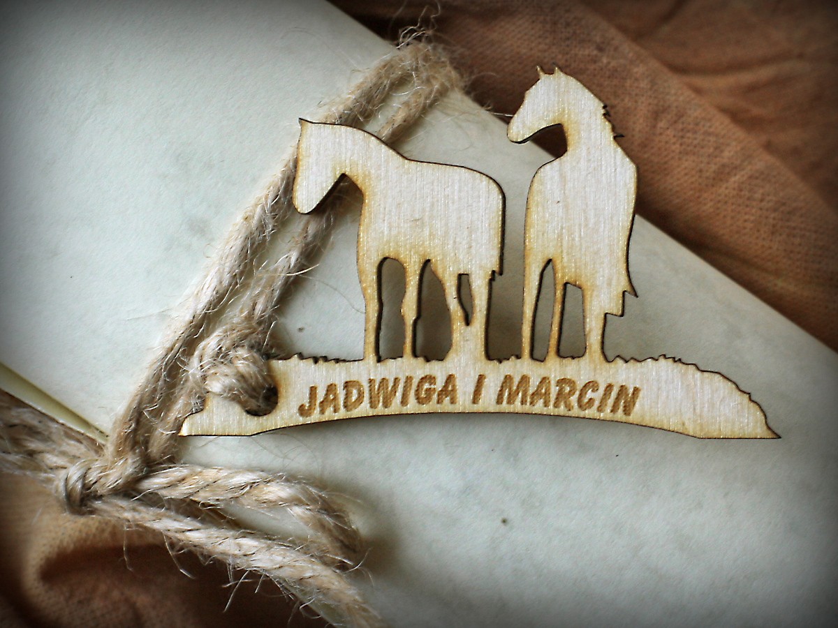 Cena zaproszenia obejmuje wykonanie ozdobnego elementu z drewna o grubości 3mm z wygrawerowanymi inicjałami i datą ślubu oraz wydruk treści na papierze A4 kreda 200g zadrukowanym dwustronnie wybranym wzorem tła.