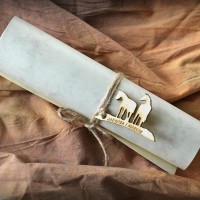W komplecie znajduje się również wybrany przez Państwa jeden z dodatków: tasiemka, sznurek lub rafia. Zaproszenia wysyłamy w formie rozłożonej, gotowe do przewiązania.
